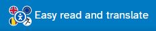 Our dedicated easy read and translation tool, which you can activate by clicking on the icon at the top right corner of the web page, has lots of useful features. The icon looks like this: