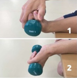 - Support your forearm on a table with your palm facing down. Hold a weight.
