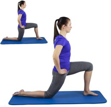 Keep the hip straight and shift your weight to your front leg so that you can feel a stretch in your hip flexors.
