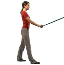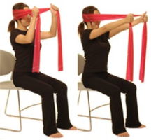 Sit or stand holding on to an exercise band with both hands.