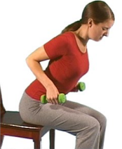 Sit leaning forward with your knees bent and back straight. Hold 1kg weights in your hands, or use cans of beans.