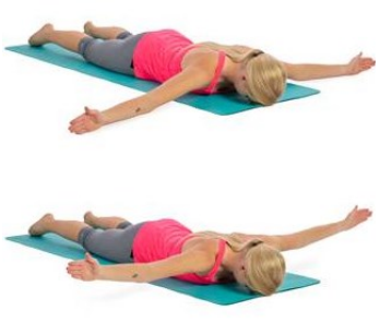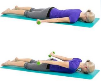 Lie on your stomach on your bed with your arms straight by your sides, holding a small weight in both hands is optional if it is initially too easy.