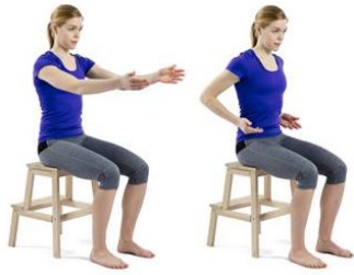 Sit up straight and lift arms forwards, with your elbows straight.