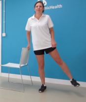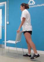 3. Alternatively, you can stand behind the chair and use this to hold as you do a mini-squat. You can progress by stepping away from the chair and doing a full squat.
