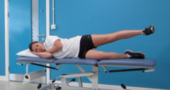 2. Lift the upper leg straight up with the toes pointing forwards and the ankle leading the movement. Try to keep the leg in line with your body. Hold for several seconds before slowly returning to the starting position.